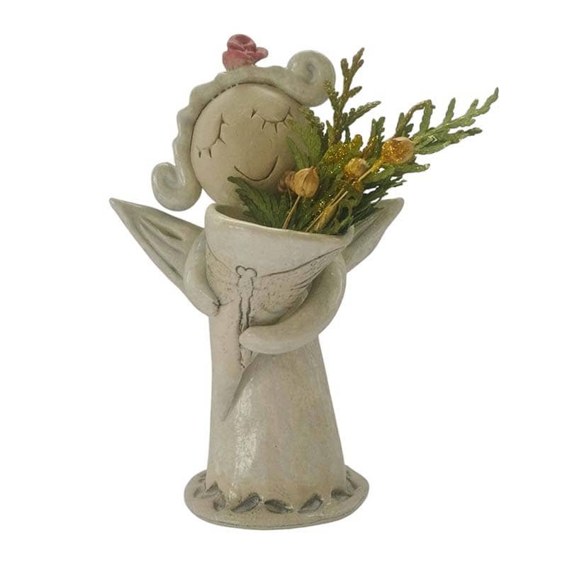 Angelas su gėle yra autorinis kūrinys pagamintas iš balto molio ir nuglazūruotas. Tai puiki dovana įvairiausioms progoms.