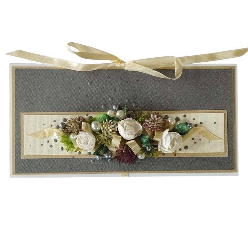 Atvirukas vokelis yra rankų darbo pagamintas iš popieriaus su karoliukais ir kitomis dekoracijomis. Atrišus atlaso juostelę, atvirukas atsiverčia, o viduje rasite vietą skirtą tekstui ir kišenėlę dovanai.
