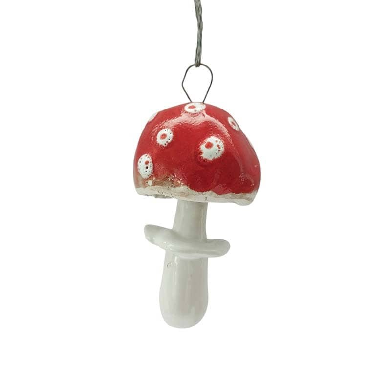 Eglutės žaisliukas musmirė yra autorinis gaminys nulipdytas iš balto molio ir nuglazūruotas. Tai originali ir šilta puošmena ant kalėdinės eglutės.