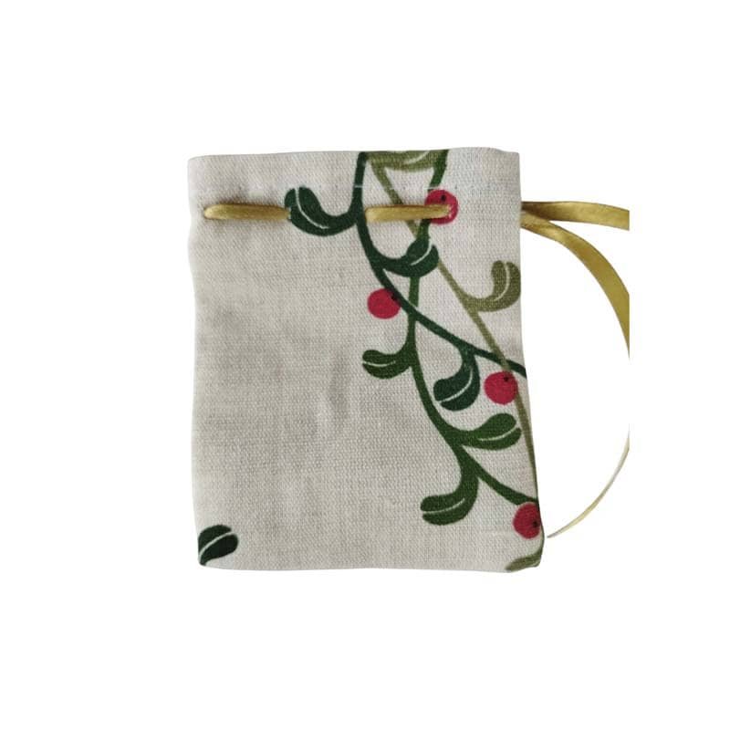 Kalėdinis medžiaginis maišelis yra siūtas rankomis iš drobės. Medžiaginiai maišeliai skirti įvairiausioms reikmėms. Juose jaukiai atrodys įpakuota dovanelė, kadangi jie yra daugkartiniai juos galima naudoti įvairioms smulkmenoms susidėti.  Kiekvienas maišelis gali turėti šiek tiek skirtingą aplikaciją.
