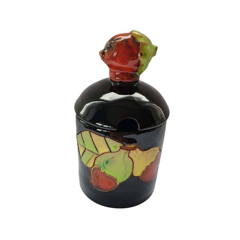 Keramikinė dėžutė ruduo yra autorinis kūrinys, pagamintas iš rudo molio ir nuglazūruotas. Tinka sąlyčiui su maistu.