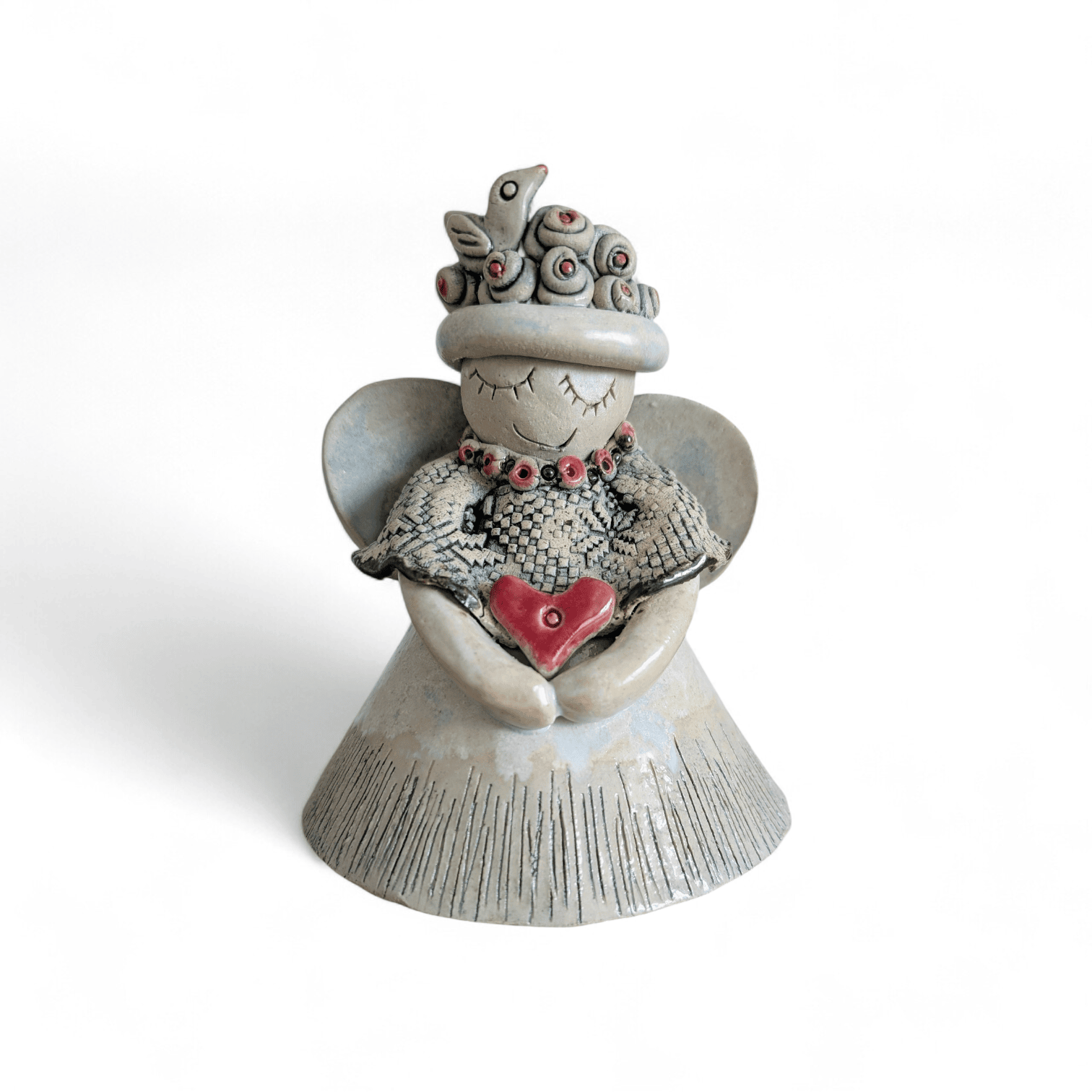 Keramikinis angelas  yra autorinis kūrinys  pagamintas iš šamotinio molio, nuglazūruotas kristaline glazūra ir išdegtas 1260 temperatūroje. Tai puiki dovana kalėdų, krikštynų, pirmos komunijos ir kitoms progoms.