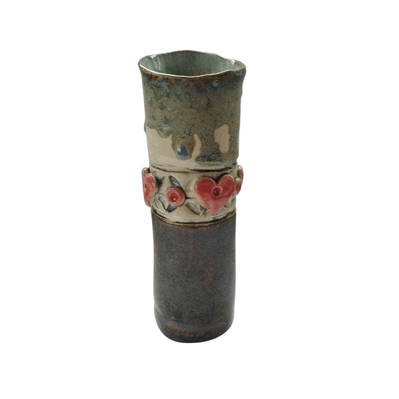 Vaza gėlėms yra autorinis  kūrinys pagamintas iš šamotinio juodo molio, glazūruotas ir išdegtas 1260 temperatūroje. Vaza nepraleidžia vandens tinka merkti nuskintas gėles.